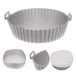 Especificações: Tamanho aproximado: 4,5x18cm de Peso aproximado: 60g Tipo de produto: forma redonda com alca para air fryer / fritadeira eletrica Cor: cinza e vermelho Composição: silicone Ean: 7899850349888