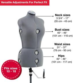 - Obtenha o ajuste perfeito para qualquer projeto de costura: esteja você criando uma nova peça de roupa ou fazendo alterações, a forma de vestido ajustável SINGER ajuda você a alcançar o ajuste perfeito sempre. Com pescoço, busto, cintura, quadris e altura ajustáveis, acomoda tamanhos 10-18, tornando seus projetos de costura precisos e profissionais.