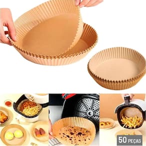 Forma descartável de air fryer fritadeira pegador 50un 100 unidades papéis protetores descartáveis para air fryer - mantém a sua air fryer sempre limpa - não gruda sujeiras - material a prova dágua, a prova de óleo, antiaderente e 100% saudável - boa resistência ao calor, suporta até 220 - pronto para usar - pode ser utilizado em diversos eletrodomésticos: air fryer, micro-ondas, forno elétrico e a gás, etc... Acabe com a gordura e oleosidade na sua air fryer, após o uso