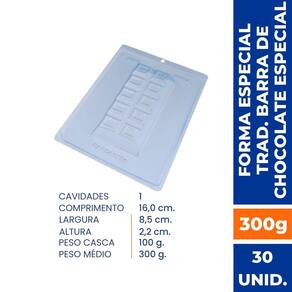 Quantidade: 01 Cavidade: 1 Comprimento: 160 mm x Largura: 80,5 mm x Altura: 22 mm Peso casca: 100 g Peso médio: 300 g Modelo: Especial (3 Partes)