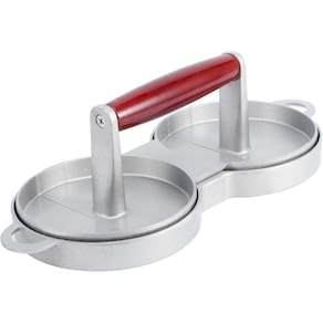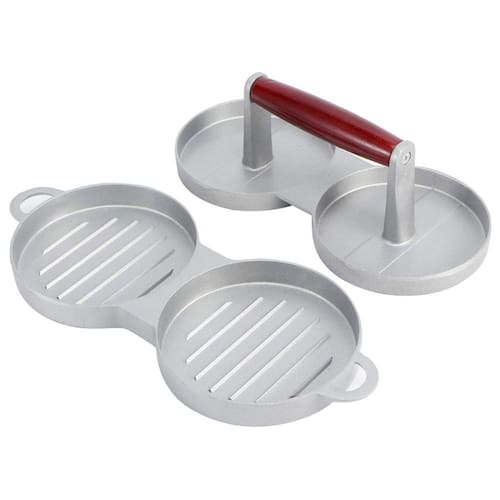 Forma Hambúrguer Dupla Prensa Modeladora Alumínio Cabo de Madeira