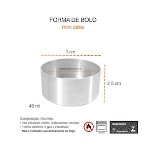Contem: 12 Mini Formas Medidas: 4 x 2,5 cm Material: Aluminio CASACHA é uma empresa especializada em utensilios de cozinha profissionais.