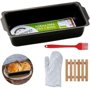 01 Forma de Pão 900ml 01 Luva Térmica de Cozinha 01 Pincel Culinário de Silicone 01 Descanso de Panela
