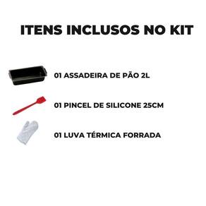 01 Forma de Pão 900ml 01 Pincel Culinário de Silicone 01 Luva Térmica de Cozinha
