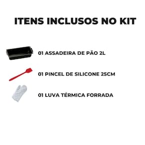 01 Forma de Pão 900ml 01 Pincel Culinário de Silicone 01 Luva Térmica de Cozinha