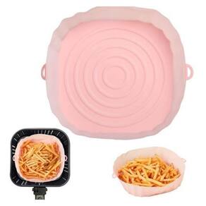 Forma para air fryer de silicone reutilizável antiaderente x000d x000d Forma em silicone quadrada antiaderente são resistentes, maleáveis e reutilizáveis para air fryer. Muito fácil de utilizar, é só encaixar dentro da fritadeira e após utilizar você vai notar que a sujeira não gruda, pois ela é toda de silicone e super antiaderente. Pode ser utilizada no microondas, na fritadeira, no forno, lava-louças e freezer. É uma solução completa.