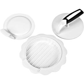 A forma para hambúrguer é fabricada em plástico resistente, composta por três peças que auxiliam a confecção do seu hambúrguer caseiro.