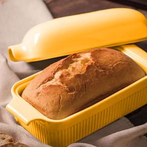 Forma para pão com tampa Amarelo GermerCom estilo e resistência este produto é ideal para compor sua cozinha e torna-la ainda mais completa e profissional. Com o mais elevado padrão de porcelana, garantindo mais qualidade e cores mais vivas. Queimadas a uma temperatura próxima a 1340 c, não absorvem água em função de sua porosidade nula. Isso garante a higienização perfeita das peças, alem de torna-las altamente resistentes a choques mecânicos. Esmalte resistente, podendo ser submetido ao efeito abrasivo das lava louças e também dos micro-ondas.Contém: 01 Forma para PãoMaterial: PorcelanaAltura : 12cmLargura : 14cmComprimento : 29cmLavar com água e sabão neutro utilizando esponja macia, seguido de pano seco. Não utilizar produtos químicos ou abrasivos na limpeza. Vai à lava-louças.