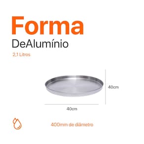 Forma para pizza de alumínio 40cm com borda alta e capacidade de 2,1 litros ideal para uso doméstico e