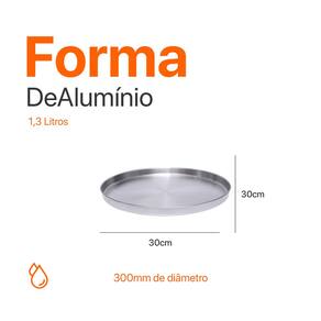 Especificações Técnicas: – Material: Alumínio de alta qualidade – Capacidade: 1,3 Litros – Diâmetro: 30 cm (Tamanho N30) – Altura aproximada: 3 cm – Acabamento: Alumínio polido, leve e resistente ao calor Atenção para o detalhe: a espessura do alumínio garante que o calor seja distribuído de forma uniforme, proporcionando pizzas com bordas crocantes e centro no ponto ideal.