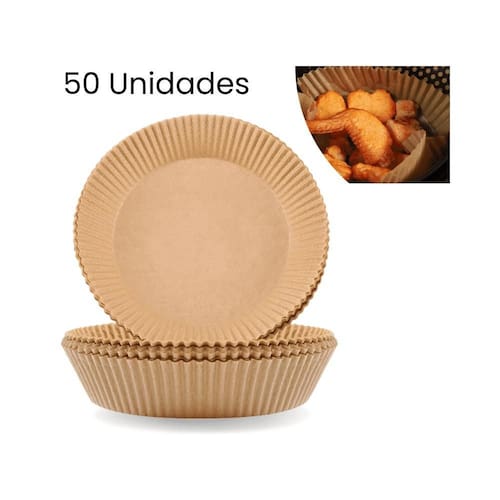 Forma Redonda Descartável 50Un Para Air Fryer Marrom