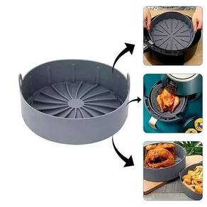 BENEFÍCIOS: 1. Fácil de usar, o melhor acessório de fritadeira para o problema que é pesado para a cesta depois de usar. 2. Circulação de ar, os caminhos do ar aquecido, estrutura de circulação de ar de 360 graus na parte inferior. 3. Panela de silicone ecológica e reutilizável em vez de outros forros de fritadeira. Serve para fritadeiras de 20 cm. 4. Material de silicone de grau alimentício confiável, antiaderente, não tóxico, seguro e durável de usar. 5. Não precisa se preocupar em queimar com material de silicone resistente a altas temperaturas (-40 + 220).