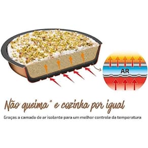 Forma Redonda Revestida 25cm Gourmet Pro - Rochedo Produtos cada vez mais inovadores são um grande diferencial para garantir que suas receitas fiquem perfeitas e cada vez mais saborosas. Para isso, a rochedo, marca referência em produtos de cozinha, lançou a mais nova linha rochedo gourmet pro que atende as necessidades do a com toque e tecnologia de ponta. As assadeiras da linha rochedo pro cumprem o seu papel essencial e indispensável para quem gosta de fazer receitas e trazem o resultado perfeito aliando desempenho com design sofisticado em cobre para sua cozinha. Confira abaixo os destaques da assadeira rochedo gourmet pro revestida: revestimento : antiaderente 5 estrelas de alta performance para melhor desempenho de suas receitas. Não queima e cozinha por igual: graças a camada de ar isolante que oferece um melhor controle de temperatura limpa fácil: extra antiaderente interno e externo para fácilitar na hora da limpeza. Durabilidade e alta resistência: assadeiras de alumínio que duram por muito mais tempo mesmo com a utilização constante na cozinha. Livre de substâncias tóxicas: produtos seguros e livres de resíduos tóxicos que possam causar danos à saúde. Especializada em formas e assadeiras, a rochedo é de resultados perfeitos aliando tecnologia de ponta e design para tornar o hábito de cozinhar mais fácil e prático. Formas e assadeiras de verdade têm que ser rochedo Caracteristicas do produto: Formato: Redondo Medidas aproximadas CXLXA : 25x25x6cm Linha: Gourmet Pro Cor: Cobre Antiaderente: Sim