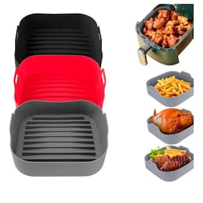 Forma de silicone quadrada reforçada para fritadeira airfryer. Ideal para preparo de bolos, tortas, pães, sobremesas e alimentos fritos como batata, frango e legumes. Permite a circulação de ar quente, dispensa o uso de óleo para untar, não gruda e é fácil de lavar (manual ou lava-louças). Resistente a altas temperaturas.Tipo