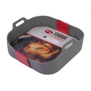 Formato que permite circulação de ar quente, não gruda, desenforma com facilidade.Tipo