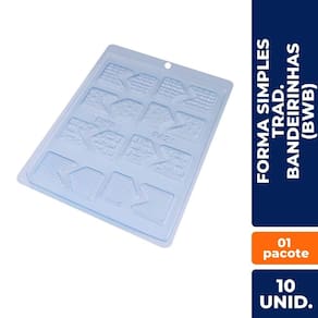 Kit com 10 Formas Simples Tradicionais Bandeirinhas – BWB OriginalIdeal para quem trabalha com confeitaria ou ama fazer chocolates em casa! Com design clássico e prático, as formas simples da BWB no modelo bandeirinhas são perfeitas para criar bombons, lembrancinhas, doces temáticos e muito mais com acabamento profissional. Marca confiável: BWB – qualidade garantida Modelo bandeirinhas – formato versátil e delicadoPerfeita para festas, eventos e produção em escalaFácil de desenformar – plástico resistente e flexívelReutilizável e fácil de limpar