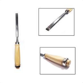 Especificações: - Marca: Eda; - Modelo: 4WN; - Material: Madeira e Aço Carbono; - Tamanho: 3/8; - Tipo: Formão; - Medidas Embalagem L x A x C : 7 x 3 x 30,6mm.