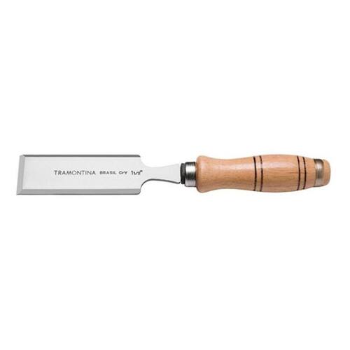 Formao Chanfrado 5-8 Tramontina 43330104 Tramontina - Prazer em fazer bonito Formão Chanfrado 5/8 Tramontina em Aço Cromo Vanádio com Cabo de Madeira FERRAMENTAS, Construção Civil, Serrotes, formões e plainas, Formões Carpinteiros e marceneiros contam com a ajuda dos formões Tramontina na hora de fazer rebaixos, entalhes, cortes e encaixes. A ferramenta certa para você que trabalha na construção civil ou com pequenos reparos. Composição qtde / código / produto . Lâmina em aço cromo vanádio temperado e lixado. Lâmina chanfrada e polida. Cabo de madeira ergonômico envernizado. As ferramentas são submetidas a testes de aplicação prática para garantir sua resistência mecânica em uso intenso. É aplicada uma camada de verniz ou pintura anti corrosiva sobre as lâminas para garantir uma maior vida útil da ferramenta. As ferramentas são produzidas e testadas conforme normas específicas. Tamanho: 5/8 EAN13: 7891114023787 DUN14: 17891114023784 NCM: 8205.30.00 Peso Líquido: 0,1500 kg. Peso Bruto: 0,1500 kg. Metragem: 0,005206 m3. Dimensões Produto Compr. X Larg. X Alt. : 257x 30x 30 mm. Dimensão Extra A: 16,0 mm. Dimensão Extra B: 257,0 mm. Dimensão Extra C: 30,0 mm. . . Marca: Não Informado