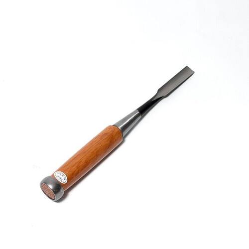 Formão japonês para madeira tipo goiva 12MM 1/2 REF 1202-012. Este formão possui uma lâmina tipo goiva muito afiada e resistente para trabalhos finos em madeira macia ou dura. A lâmina é resultado da arte de unir a melhor combinação de aço com alto teor de carbono laminados em um corpo de ferro macio. Back ground interiço e oco, que reduz a área de contato com a peça e diminui o atrito, resultando em cortes suaves e limpos. O Cabo de Akagashi Oak, carvalho japonês vermelho , madeira de alta qualidade e resistência com anel de aço na extremidade quando se usa martelo para um trabalho fino e pesado.