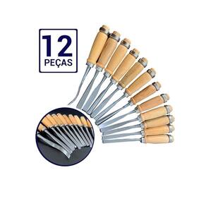 O jogo de Formão Goiva com 12 peças tem 12 lâminas de formas diferentes e em aço carbono, muito afiadas, lateral reta ou curva e polida com cabo de madeira proporcionando maior firmeza para seu trabalho.
