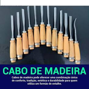 Cabo de madeira Comprimento: 195mm Comprimento da lâmina: 105mm Comprimento do cabo: 90mm Largura aproximada das lâminas: 10mm Todos os formões têm a mesma medida de comprimento Diversos formatos de Goivas como: obliquo, bruril, colher, e outros...S Marca: Não Informado