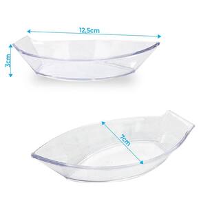 Essas barcas de acrílico também são versáteis, podendo ser usadas para servir diversos aperitivos e molhos, adicionando variedade e surpresa à experiência gastronômica.
