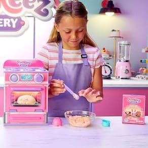 Cookeez Makery é uma experiência surpreendente que vai encantar você! Ao "assar" um amigo de pelúcia surpresa, ao abrir a porta do forno, você descobrirá um amigo interativo de pelúcia, quentinho e perfumado, em forma de uma deliciosa guloseima assada com um aroma irresistível! O Cookeez Makery inclui tudo o que as crianças precisam para misturar e criar essa surpresa assada. Ao abrir a porta do forno pela primeira vez, você encontrará uma caixa e um cartão de receita, que indicam qual amiguinho será assado. Quem sabe se será um cachorrinho, um gatinho ou um coelhinho? A diversão começa quando você mistura os ingredientes para criar uma massa. Com o molde de massa e a espátula inclusa, você adiciona características faciais adoráveis. É muito fácil! Em seguida, coloca no forno e fecha a porta. Em apenas 90 segundos, você ouvirá um adorável "ding". É hora de abrir o forno e conhecer seu novo amigo! Imagine só, um brinquedo de pelúcia quentinho, deliciosamente perfumado e interativo para brincar! Seu novo amiguinho até emite sons encantadores quando você o aperta e brinca com ele! Com o Cookeez Makery, assar amigos nunca foi tão fácil! Quantas pelúcias incríveis seu filho vai criar? São 6 opções disponíveis. E o melhor de tudo é que você pode repetir o processo quantas vezes quiser para impressionar sua família e amigos!