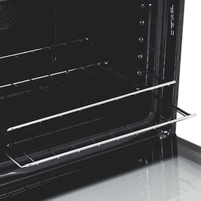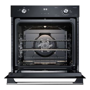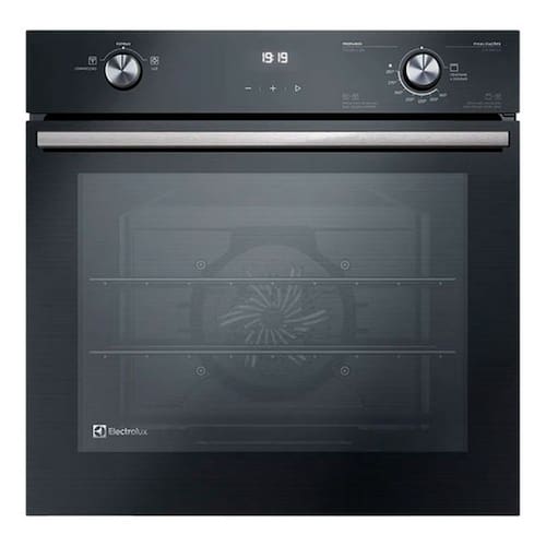 Forno a gás de embutir com capacidade de 80 litros, ideal para diversas receitas. Design moderno na cor preta.Timer