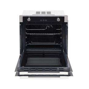 Open Space: espaço interno com capacidade 25% maior que os fornos radicionais com dimensões de 60cm. Sistema de convecção: proporciona melhor circulação do calor permitindo seu cozimento uniforme do alimento e ventilação de refrigeração. Assa salgados e doces ao mesmo tempo. Timer digital programado 24 horas. Sistema de ventilação tangencial: para refrigeração do aparelho. Porta ampla de vidro triplo, com tratamento anti impressão digital: melhor visualização do cozimento além de facilitar a higienização do forno. 5 níveis de prateleiras. Manípulos de metal.Timer