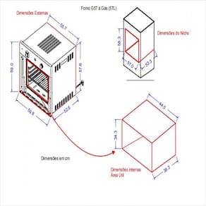 Dimensões externas do produto L 59,8 cm x A 59,0 cm x P 51,4 cm Dimensões internas do produto L 44,0 cm x A 34,3 cm x P 38,3 cm Dimensões nicho L 57,0 cm X A 58,3 cm X P 52,0 cm Espaço interno 57 Litros Peso 25,95 kg