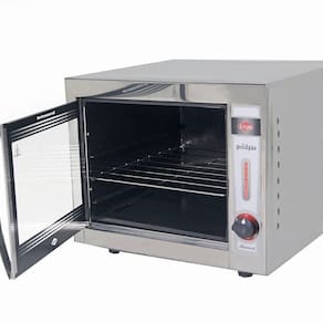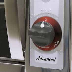 Gabinete Externo: Aço inoxidável Gabinete Interno: Revestimento easy-clean Frontal: Aço inoxidável Puxador: Aço inox Seletor: Controle de altura da chama Porta: Removível de vidro cristal temperado Isolamento Térmico: Lã de rocha Bandeja: Esmaltada difusora de calor Prateleira: Removível em 3 posições Queimador: EsmaltadoTimer