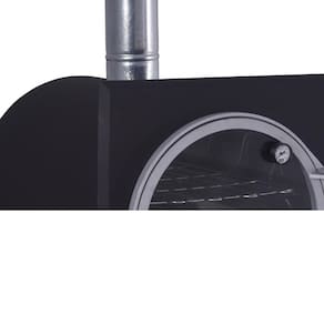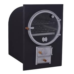 Forno a lenha de embutir com acabamento interno em aço inoxidável e pintura externa em tinta especial para alta temperatura. Porta com visor em vidro temperado. Possui termômetro, câmara e bandeja em aço inoxidável, e duas grades. Saída para chaminé de 13 cm.Tipo
