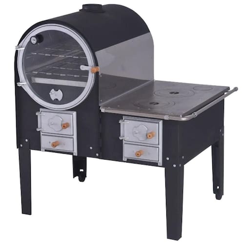Além de ser fácil de rápido de manusear, o forno a lenha com fogão é o único do mercado que possui porta fabricada totalmente em vidro temperado, possibilitando melhor visualização dos alimentos durante o seu preparo, termômetro para acompanhamento e ajuste da temperatura de acordo com a necessidade da sua receita, câmara e bandeja com revestimento em aço inox, além de duas grades em diferentes alturas que permite melhor aproveitamento dos 132 litros do fogão a lenha com forno.