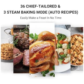 Cor: Preto Dimensões do produto: 41,66 cm (Altura) x 40,89 cm (Largura) x 32,51 cm (Profundidade) Nome do modelo: Forno de convecção a vapor de bancada Código UPC: 840296508817 Capacidade: 19L Marca: Não Informado