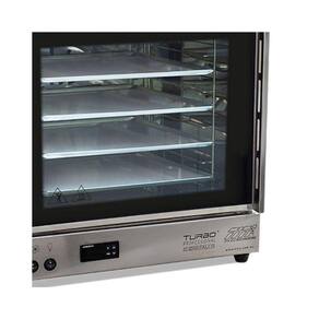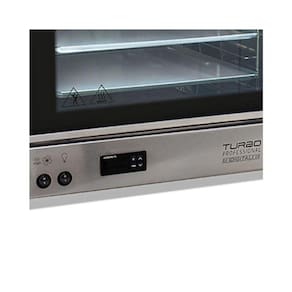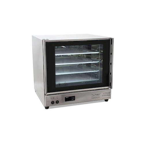 O Forno Turbo de Bancada Elétrico 4 Assadeiras Digital FETPD4A Tita é um equipamento de cozinha profissional feito em aço inox 439/441 escovado e aço inox 430 brilhante, com capacidade para 4 assadeiras. Possui sistema de convecção com motor WEG 0,025 Kw, resistência blindada espiral de 3000W e controle digital de temperatura e tempo de cozimento. A porta é de vidro temperado em conformidade com a Norma ABNT NBR 14698, garantindo segurança e eficiência.