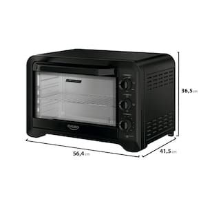 Forno Elétrico de Bancada PratiKo 50 L Dako com Grill Preto. Possui 50 litros de capacidade, timer de até 120 minutos com desligamento automático, controle de temperatura de 100°C a 250°C, prateleira com 3 níveis de altura e função Grill.Timer