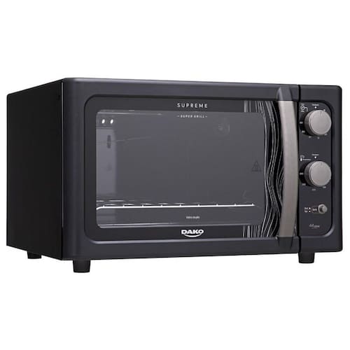 O Forno Elétrico Dako Supreme combina design exclusivo com praticidade e desempenho. Com 44 litros de capacidade e 1.750 watts de potência, ele doura, gratina e aquece rapidamente, preservando o sabor dos alimentos. Oferece controle de temperatura de 50C a 300C, controle independente das resistências, grill dourador, timer de 120 minutos com desligamento automático e lâmpada interna. Possui acabamento limpa fácil, duplo vidro temperado e pés antiderrapantes, facilitando o uso e a limpeza.