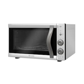 Forno elétrico de bancada Mueller com capacidade de 50 litros, grill, timer de até 120 minutos, variação de temperatura de 50ºC a 300ºC, porta com vidro duplo e interior Total Clean.Forno autolimpante