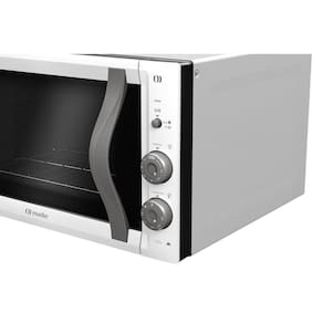 Abertura de porta: Porta com abertura lateral. Acabamento do interior do forno: Total Clean. Bandeja para resíduos: Removível com acabamento esmaltado. Dourador Grill: Sim. Luz Interior: Sim. Material: Frontal em termoplástico. Material do corpo: Chapa de Aço Pintada. Prateleiras: 01 prateleira com três níveis de altura. Timer: Timer de até 120 minutos com aviso sonoro. Tipo de controle: Botões de Acionamento Manual. Tipo de forno: Forno Elétrico de Bancada. Variação de temperatura mínima/máxima: 50ºC a 300ºC. Vidro da porta: Vidro duplo.Forno autolimpante