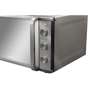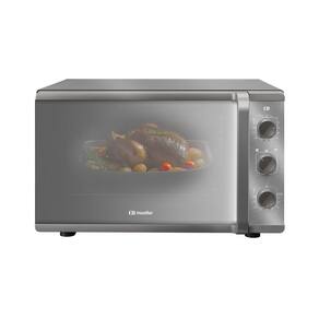 Abertura de porta: Porta com abertura lateral; Acabamento do interior do forno: Total Clean; Bandeja para resíduos: Removível com acabamento esmaltado; Material: Frontal total em vidro; Puxador de Plástico; Material do corpo: Chapa de Aço Pintada; Prateleiras: 01 prateleira com três níveis de altura; Vidro da porta: Vidro duploForno autolimpante