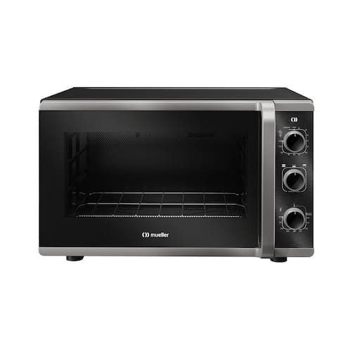 Forno de Bancada Mueller 50 litros com Grill Preto Fosco MFB50K 220V - Características Gerais do Produto: Abertura de porta: Porta com abertura lateral Acabamento do interior do forno: Total Clean Bandeja para resíduos: Removível com acabamento esmaltado Consumo aproximado de energia kw/h : 0,61kWh Dimensões da embalagem cm : A: 37,8 x L: 61,4 x P: 54,8 Dimensões externas cm : A: 35,5 x L: 58,0 x P: 49,7 Dourador Grill : Sim Luz Interior: Sim Material: Frontal total em vidro; Puxador de Plástico Material do corpo: Chapa de Aço Pintada Peso: Peso líquido: 12,25 kg / Peso bruto: 12,90 kg Potência da resistência Inferior Watts : 900W Potência da resistência Superior Watts : 900W Potência total Watts : 1800W Prateleiras: 01 prateleira com três níveis de altura Tensão: 220V; 127V Timer: Timer de até 120 minutos com aviso sonoro Tipo de controle: Botões de Acionamento Manual Tipo de forno: Forno Elétrico de Bancada Variação de temperatura mínima/máxima : 50ºC a 300ºC Vidro da porta: Vidro duplo Modelo referência do produto: 610003755 127V / 610003754 220V Atenção: O plugue do cabo de alimentação de seu produto está em conformidade com a NBR 14136/2002 do Inmetro e deverá ser mantido. Acompanha o produto: Manual de Instruções 01 grade cromada 01 bandeja esmaltada para resíduos Rede de postos autorizados : 12 Meses de de Fábrica Marca: Não Informado