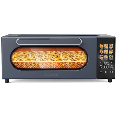 Graças à inovadora tecnologia de circulação de ar quente 360°, este forno utiliza 85% menos óleo em comparação aos métodos tradicionais de fritura, mantendo a textura crocante dos alimentos. É a escolha perfeita para preparar frango, batatas fritas, bifes, peixes e muito mais.