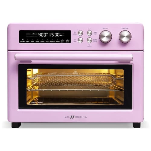 Forno de Convecção 10 em 1, 24,8L com Função Air Fryer, Livro de Receitas e Aquecimento Infravermelho, 1750W, Val Cucina Retrô, Rosa - 110v