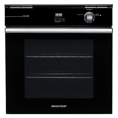 Forno de embutir a gás Brastemp 78 litros com grill, Touch Timer e duas prateleiras com 7 níveis de ajuste. Possui ventilador de resfriamento e paredes internas esmaltadas para facilitar a limpeza.Timer