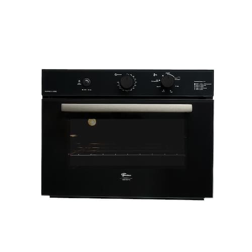 Forno de embutir a gás Fischer Infinity 50L com Grill Dourador, timer com aviso sonoro, controle de temperatura ajustável (160°C a 260°C), revestimento EasyClean, porta com vidro duplo e sistema de resfriamento interno.Timer