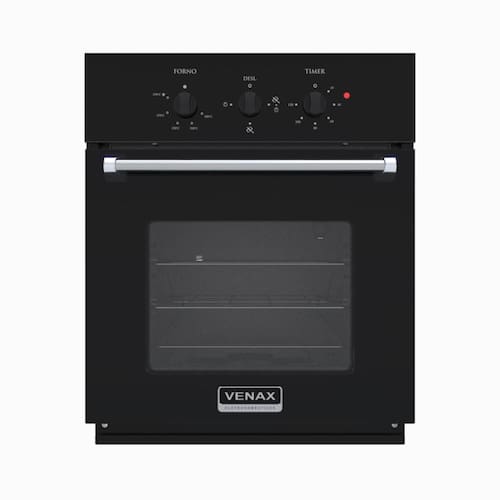 Tipo: Forno de embutir Marca: Venax Acendimento: Super automático Válvula de segurança: Sim Luz no forno: Sim (lâmpada não acompanha o produto) Prateleira do forno: 2 Deslizantes Revestimento forno: Limpa fácil Controle de temperatura: 5 Posições Temperatura: 180C até 290C Timer Gás: Não Função grill: Sim Timer grill: Sim Espeto giratório: Sim, 1 espeto removível Bandeja coletora de resíduos: Sim Porta do forno: Visor de vidro Vidro duplo na porta: Sim Porta removível: Sim Puxador da porta: Aço cromado Botões: Removíveis Entrada de gás: Dupla (Reversível) Medidas do produto: Altura 61cm - Largura 51,7cm - Profundidade 61,5cm