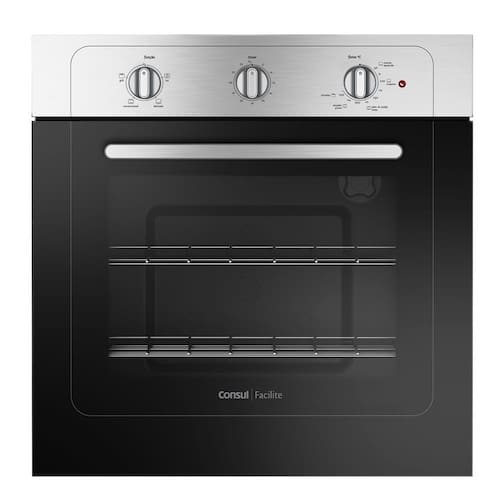 O novo forno elétrico de embutir Consul Facilite possui capacidade de 60 litros e botões de função, temperatura e timer que auxiliam a sua programação. Na programação da temperatura, você encontrará diversas maneiras de preparo. Exemplo: para assar uma pizza, gire o botão direito "forno ºC" até a temperatura 225ºC, que indica "assados e pizza" e, depois, gire o botão esquerdo "função" para a função convencional, que ativa a resistência inferior e superior do forno.