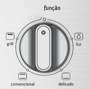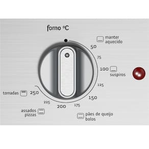 <strong>Controle fácil</strong> O seu forno possui botões de função, temperatura e timer que auxiliam a sua programação. Os ícones com receitas do dia a dia no botão direito "forno oC" facilitam a programação da temperatura e também indicam a função adequada a ser colocada no botão "função", à esquerda. <strong>Timer</strong> O timer permite que você programe um tempo de cozimento e avisa quando o tempo finalizar. Esta função não atua no funcionamento do forno, ela é apenas um aviso sonoro. <strong>Tabela orientativa de preparos</strong> No vidro interno da porta do seu Forno, você encontrará a tabela abaixo que orienta as programações mais adequadas para diversos tipos de preparo. <u> Detalhes</u> - Temperatura: de 50 a 250 °C / 9 temperatura - 50, 75, 100, 125, 150, 175, 200, 225 e 250; - Isolamento termico total: Sim; - Duas prateleiras de arame galvanizado; - Uma bandeja esmaltada removível.Timer