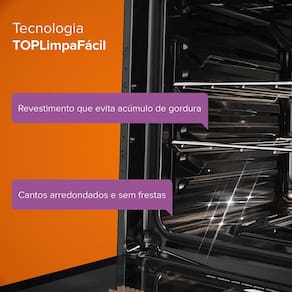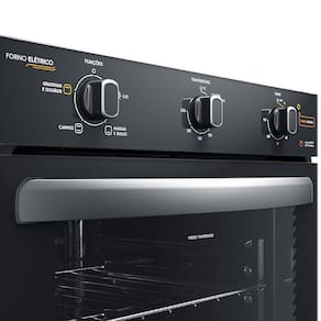 - Tecnologia TOPLimpaFácil: forno com revestimento que evita acúmulo de gordura e permite maior facilidade na remoção de manchas, além de cantos arredondados e sem frestas que facilitam a limpeza no dia a dia. - Autolimpante - revestimento interno em esmaltação vitrificada - Vidro Interno Removível: remova o vidro interno com facilidade para uma limpeza mais fácil, profunda e completa do seu forno. - Tamanho Família - capacidade de 80 litros: prepare suas refeições para toda família com todo o espaço necessário. - Grill para Gratinar e Dourar: ao gratinar e dourar a superfície dos alimentos, suas receitas ficarão crocantes por fora e suculentas por dentro. - Diferentes modos de assar: duas opções de Modos de Assar para um melhor resultado dependendo do tipo do alimento e preparo desejado. Um modo para “Carnes” e outro modo para “Massas e Bolos” - Timer Mecânico: o forno pode ser programado para desligar automaticamente assim que o tempo selecionado no timer acabar, o que garante maior praticidade e comodidade no preparo dos alimentos. - Função Manter Aquecido: mais praticidade para seu dia a dia para reaquecer ou manter seu prato aquecido após o preparo - Melhor visualização interna: com iluminação potente e porta com maior área de visualização, acompanhe suas receitas sem necessidade de abrir a porta do forno. - Vidro Duplo: porta com dois vidros que oferece uma menor temperatura na parte externa do forno. - Prateleira regulável e removível: flexibilidade no preparo dos pratos, ajuste a altura da prateleira da forma que quiser, de acordo com o tamanho da receita. - 2 prateleiras raspantes - Controle de temperatura: mecânico - Range de temperatura (mínima e máxima): 50 - 250°CTimer