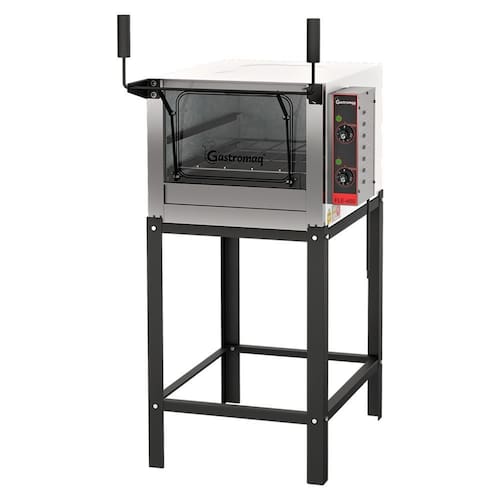 Forno de Lastro Elétrico com Porta Guilhotina FLE450PG Gastromaq. Forno de lastro com pedra refratária ideal para assar pães, cucas, bolos, biscoitos, salgados, pizzas e similares de maneira uniforme. Controle de temperatura por termostato até 320°. Painel lateral. Resistência superior e inferior com termostatos independentes. Acabamento interno galvanizado. Isolamento em lã de rocha 30mm. Acompanha grade reforçada interna móvel. Cavalete robusto e desmontável. Versões simples e duplo. Acabamento externo em pintura epóxi e frontal em inox. CONSUMO: 3 kW/h. POTÊNCIA: 3.000 W. DIMENSÕES EXTERNAS (CxAxL): 94,5x1.42x69cm - DIMENSÕES INTERNAS (CxAxL) 70,5x26x45,5cm. PESO: 47Kg. Equipamento certificado pelo OCP 0070 conforme Portaria INMETRO - 267/2021. Forno de Lastro Elétrico FLE450PG Gastromaq é na Atau.